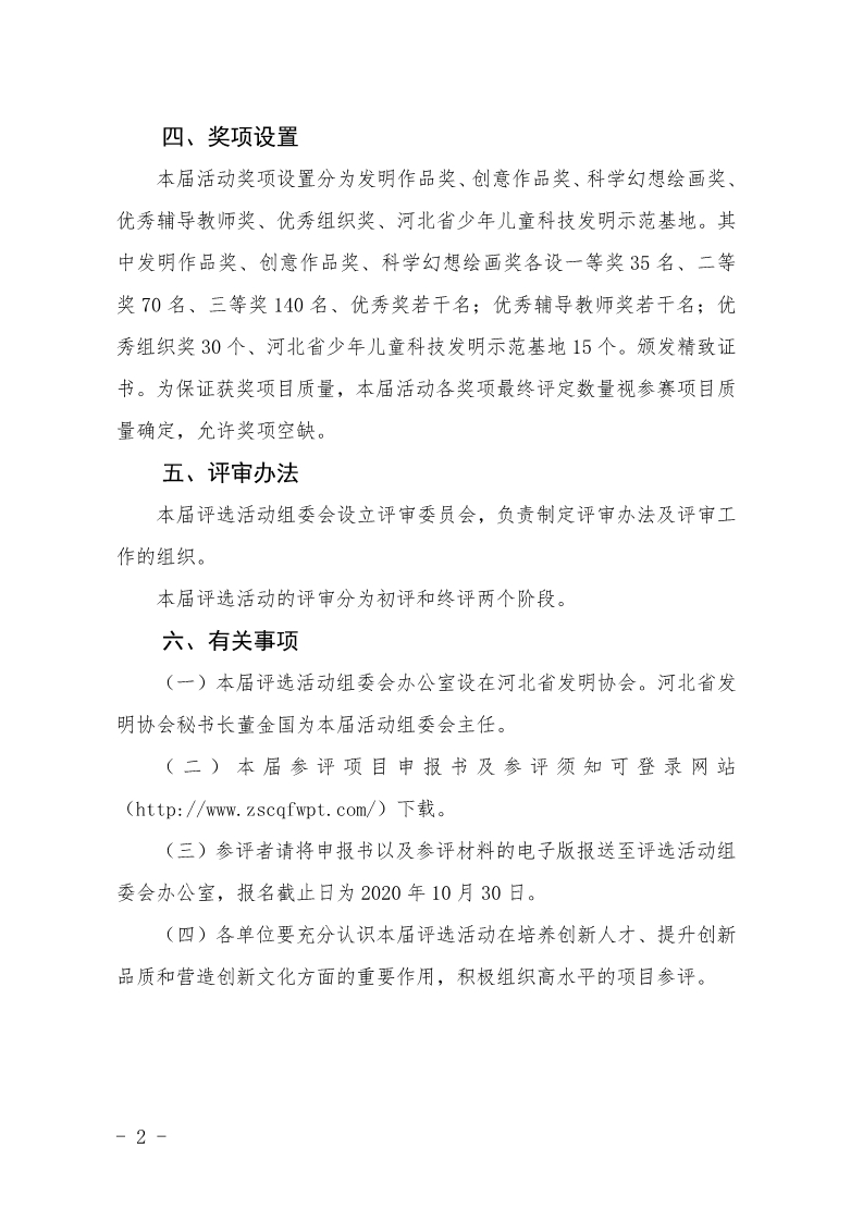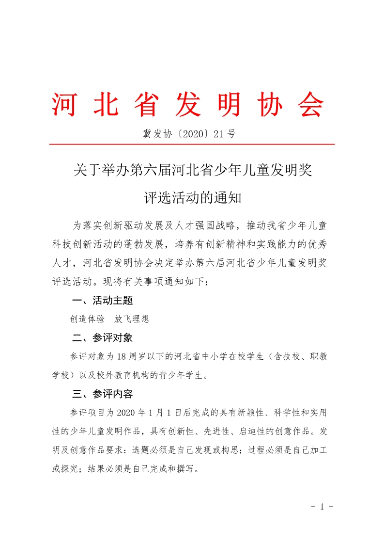 關于舉辦第六屆河北省少年兒童發明獎評獎活動的通知