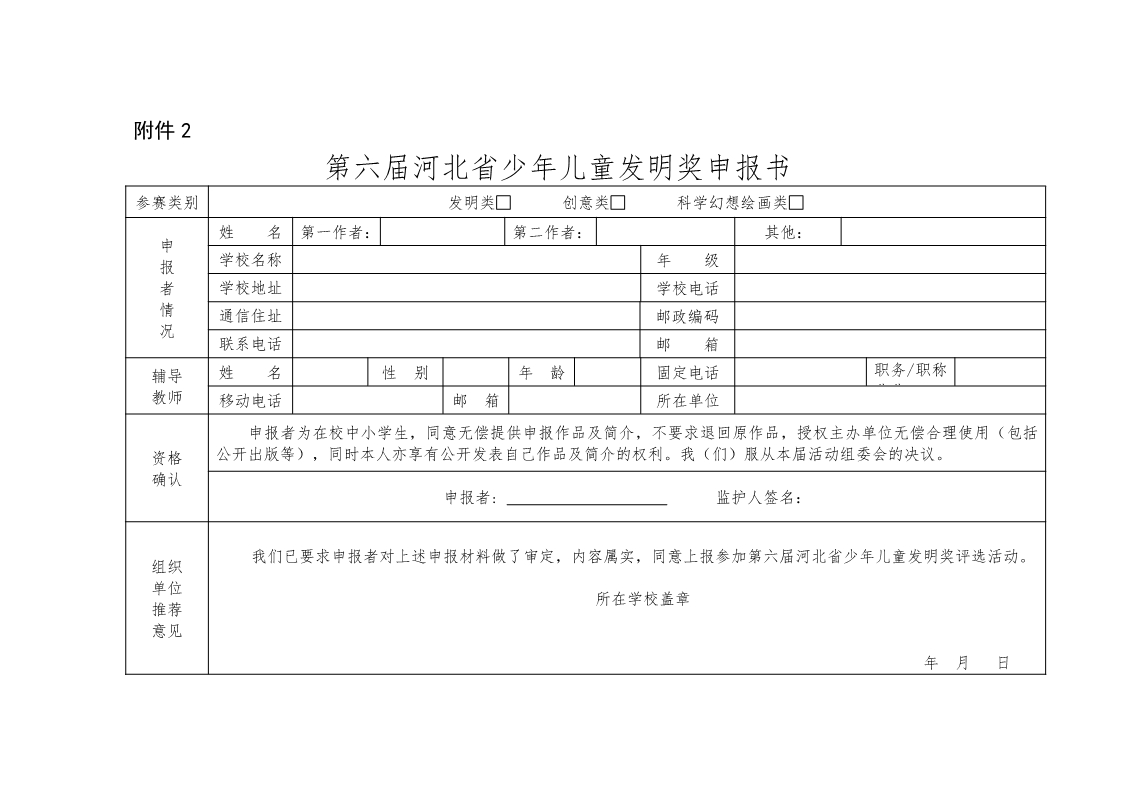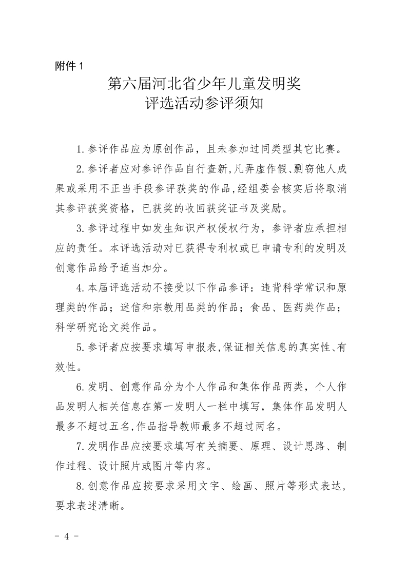 關于舉辦第六屆河北省少年兒童發明獎評獎活動的通知