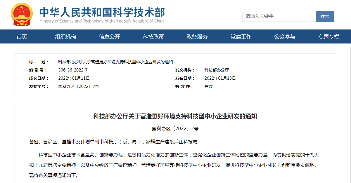 科技部辦公廳關于營造更好環(huán)境支持科技型中小企業(yè)研發(fā)的通知