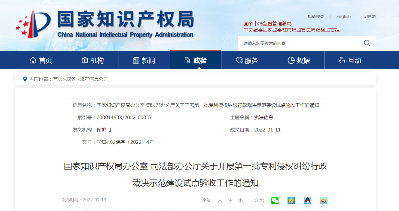 【國知局】司法部辦公廳關于開展第一批專利侵權糾紛行政裁決示范建設試點驗收工作的通知