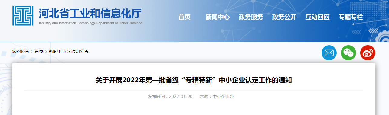 關于開展2022年第一批省級“專精特新”中小企業認定工作的通知