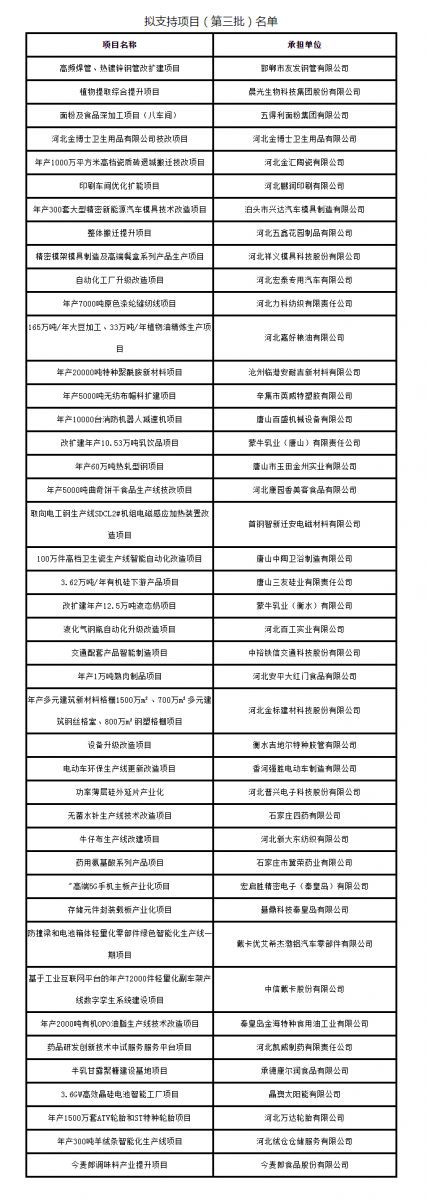 關于對2021年河北省工業(yè)轉型升級(技改)“百項示范”工程專項資金擬支持項目(第三批)的公示